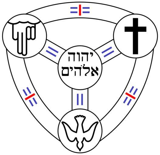 | Keywords: Shield of the Trinity diagram - language-neutral concept.svg Concept of a relatively language-neutral version of the Shield of the Trinity or Scutum Fidei diagram of traditional Christian symbolism though obviously Hebrew script is used at the center There are simplistic/minimalistic symbols of the persons of the Trinity in the three circles around the edge i e the hand of God basic Latin cross and descending dove of Holy Spirit while Hebrew names of God are in the center node A somewhat similar idea though much more decorative and keeping all the original Latin labels can be seen in the file <tt>Windows pdf</tt> downloadable from http //trinitylawrence org/resources/ see also File Jhwh landa jpg for the use of the Tetragrammaton in the center node See File Trinity Symbole St Ann's Church_DC JPG for a similar symbolic concept but not forming a Shield of the Trinity diagram For discussion and explanation of the basic diagram see the main article Shield of the Trinity Converted from a version of the following vector PostScript source code <pre> 11 dict begin/FontInfo 5 dict dup begin/Weight Medium def /FullName HebrwShlmX def/FamilyName HebrwShlmX def /ItalicAngle 0 def/isFixedPitch false def end def/FontName /HebrwShlmX def/Encoding StandardEncoding def/PaintType 0 def/FontType 1 def/FontMatrix0 001 0 0 0 001 0 0def /FontBBox -62 0 444 687 def currentdict end systemdict begin dup/Private 15 dict dup begin /MinFeature 16 16 def/password 5839 def/StdHW115def /StdVW58def/ForceBold false def/BlueValues-10 0 516 526def / - readonly def readonly def /- string currentfile exch readhexstring pop readonly def /Subrs 15 - 10bf31707c1014103d2d93445ce252 9 - 10bf317079bcf6557a 9 - 10bf317079bdc49e69 5 - 10bf3170f9 dup readonly pop readonly forall readonly def 2 index/CharStrings 9 dict dup begin /space 9 - 10bf317079c757bf91 - / notdef/space load def /w 63 - 10bf317054adeacb99da6d092601f6559c8d192f9559304d9a 2f516681fc355ac111300c9ed81cf9161afad7b457950f8cd1 77996df93bb28fbed5c4b2a684 - /y 69 - 10bf317054adeacb96b69e2797ed36d36ca99fdc5731a38db9 38fe9c90b84078fae379678b4db2894b2748459cceb72b21e7 18f8196615b9472c9a8b52362c20f14678cb8a - /quoteright 148 - 10bf31705117ae39e52f6edb11109378297f056dfadb8a2fea 58a9bf261f3ea3763820f3dd4800c1a9ff194476977e6ffe90 259c0f14db605cf27bb78160bb0b6bfba0cdced1abc4a670ba d242b8f864d55f57664a049bd2125361b9002c7ab7f8ea1959 733d0f73a872246a83ce0b750dfe1f8fb325f9cd9c8a5a2ad8 c53fadc7ec17966fc4d4f775bbfb7fbefadf630014eac0 - /M 113 - 10bf317052451c7b90c80a07c9006d2857156358ecc5331d32 265fbd9071bb2ad7c8f1f3e8c01c72bb4987b0e7c6fe87d907 a9152b120a8b8c5befa821110007211451d05c100b2ea9709f b6426d2ad1647e5c8f69350046f645604bca0ff2684b7377a7 682041d4854ec57c9684bb1ffc - /h 99 - 10bf31706d7b309d05e1dfc497419dcafe28bad2f9993508b4 43b673cf486c63fa76fa886f480f79e4ac9459bd3b1ada26b0 500426fda6f84a23770f378e7597cd09753bc86235ebea1a25 9f244108510598332b1c0bc079d81443f668da78dbeba23f - /o 37 - 10bf3170bf2ebf2674c42227023ce57ea5a9c101c5b4bf503b b3560baa4a4c1911989757e4 - /l 126 - 10bf3170537463414098fdbe50487e87f2145b446020715a0b 1be45edab9db132e98816d1444c82b0b0d98417484db1b1609 836a22de86e1857cb8d6947b6cbe62bc6cab173e5461ddafa3 2f1190756dfe93112ca0eedd51cc0cfd0b9bcee6de94cdd0bb 04fe3e40a20721715e984f6762777f6a136505c95e53e92a79 d6 - end end put put dup/FontName get exch definefont pop end / def def/N counttomark /Q grestore /r rotate /s setrgbcolor /q gsave /m moveto /x 0 0 /c newpath 66 0 360 arc q 1 1 1 s fill Q l /l stroke /v rmoveto /i rlineto mark 2 5 setlinewidth/Z 97 25 14 v 21 0 i -21 -13 v 21 0 i currentpoint l m 7 75 20 v q 0 -27 i 6 setlinewidth 2 setlinecap 1 x s currentpoint l Q m 7 75 7 v 21 0 i -21 13 v 21 0 i l /W 25 18 25 v 34 0 i -34 -13 v 34 0 i l 95 587 575 075 m 180 598 -104 434 0 -208 241 47 63 x 208 241 180 587 104 434 -23 815 41 25 -180 587 -104 434 -181 137 104 434 N 2 idiv N -2 roll i repeat l 0 x s 135 214 579 7 340 0 -60 arcn l 135 214 579 7 387 3 0 -60 arcn l 464 607 579 7 340 240 180 arcn l 464 607 579 7 387 3 240 180 arcn l 300 294 4 340 120 60 arcn l 300 294 4 387 3 120 60 arcn l x 0 s 300 484 391 c 133 564 579 7 c 466 436 579 7 c 300 294 4 c 25 25 75 s 4 75 setlinewidth q 30 r 556 257 m W Q q -30 r -121 558 m W Q q -90 r -431 288 m W Q 174 650 15 m Z q 60 r 446 -198 5 m Z Q q -60 r -395 320 95 m Z Q x 0 s q 96 96 scale/HebrwShlmX 54 selectfont 273 798 524 428 m 2 0 hwhy ashow 253 99 478 85 m M show 1 5 0 yh ashow -1 02 2 v o show 1 02 - 2 v l show 1 446 0 v ' show Q/X 300 484 391 translate 1 1 2875 div dup scale -309 -337 828 translate q 133 564 579 7 66 0 360 arc clip newpath X 2 42 translate 92 dup scale 0 setgray 1 setlinecap 62 542 m 62 470 lineto 142 470 lineto 142 542 lineto 12 setlinewidth l 82 470 m 82 390 lineto 100 470 m 100 383 lineto 24 setlinewidth l 62 5 500 m 62 5 450 lineto 27 setlinewidth l 1 setgray 62 542 m 62 470 lineto 142 470 lineto 142 542 lineto fill 82 470 m 82 390 lineto 100 470 m 100 383 lineto 12 setlinewidth l 62 5 500 m 62 5 450 lineto 15 setlinewidth l 0 setgray 118 485 m 118 450 lineto 136 485 m 136 450 lineto 24 setlinewidth l 1 setgray 118 485 m 118 450 lineto 136 485 m 136 450 lineto 12 setlinewidth l 0 setgray 73 470 m 73 444 lineto 6 setlinewidth l 0 setlinecap 12 setlinewidth 55 546 37 0 360 arc closepath l 140 546 37 0 360 arc closepath l 97 5 555 41 0 360 arc closepath l 1 setgray 55 546 37 0 360 arc closepath fill 140 546 37 0 360 arc closepath fill 97 5 555 41 0 360 arc closepath fill Q 133 564 579 7 66 0 360 arc closepath 2 5 setlinewidth l q X 0 setgray 523 286 530 m 523 286 390 lineto 481 286 487 m 565 286 487 lineto 20 setlinewidth l q 235 5 11 translate 245 dup scale 22 636 461 229 m 15 908 470 111 18 696 474 646 25 566 474 646 curveto 65 111 474 646 119 697 418 866 147 371 curveto 167 731 335 69 212 986 322 738 242 728 310 908 curveto 251 869 360 841 266 889 413 562 266 812 435 curveto 266 715 461 992 231 206 522 681 221 126 538 5 curveto 211 466 553 66 238 06 569 946 249 75 553 75 curveto 241 596 