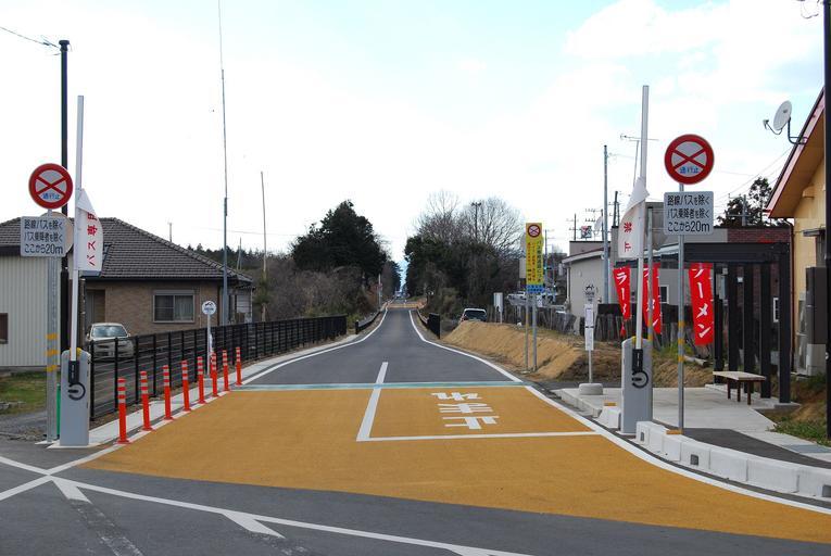 Keywords: Shikamura bus stop.JPG ja 四箇 駅バス亭 鹿島鉄道四箇 駅跡に られたバス亭でここから鹿島鉄道の線路跡を使用したバス専用道路が石岡駅近くまで続く (安全な場 から撮影) 投稿 が撮影 toshinori baba 2011-03-27 Cc-zero Kantetsu Green Bus Busways in Japan