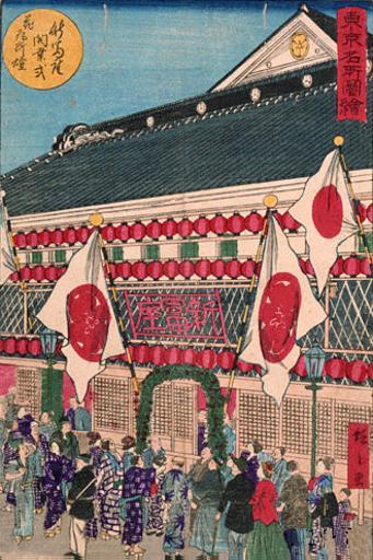 Keywords: Shintomi-za Kaigyō-shiki Hana no Gasu-tō.jpg 新富座開業式花瓦斯燈 en Tōkyō Meisho Zue Shintomi-za Kaigyō-shiki Hana no Gasu-tō The Grand Opening of Shintomi Theater and Its Fabulous Gas Lights http //www2 ntj jac go jp/dglib/edc_dic/dictionary/dic_sa/dic_sa_26 html 安政五年 / 1858 明治十 年 / 1878 Author PD-art Ukiyo-e of kabuki theaters Nishiki-e in Meiji period |