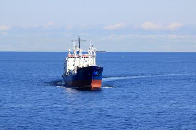 Keywords: ship cargo ship sea water blue finnish bay sky horizon clouds the skyline