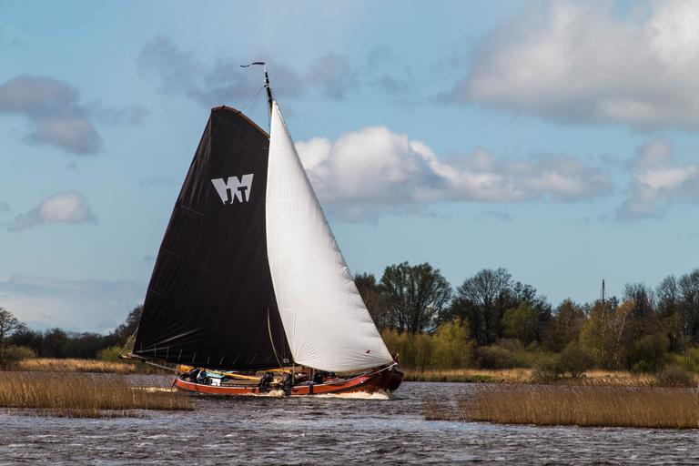 Keywords: ship flat bottom friesland water boat sailing blue sky old boating air boats netherlands