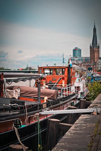 Keywords: ship shipping transport water frachtschiff rhine freighter inland waterway transport river rhine cruises dusk kahn düsseldorf vintage