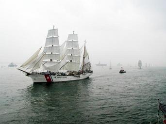 Keywords: ship tall vessel sea sailing nautical coast guard parade sail ocean maritime water cruise rigging regatta