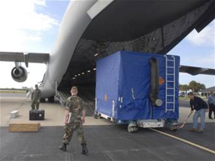 Keywords: Shipping container being loaded on a USAF cargo plane.jpg Last GPS IIR-M satlellites being readied for launch Air Force and contractor personnel observe as GPS satellite IIR-M 20 safely housed in its shipping container is offloaded Jan 10 at Cape Canaveral AFS U S Air Force photo by Tony Gray Tony Gray http //www patrick af mil/photos/index asp page 6 PD-USGov Licensing/Copyright status Shipping containers |