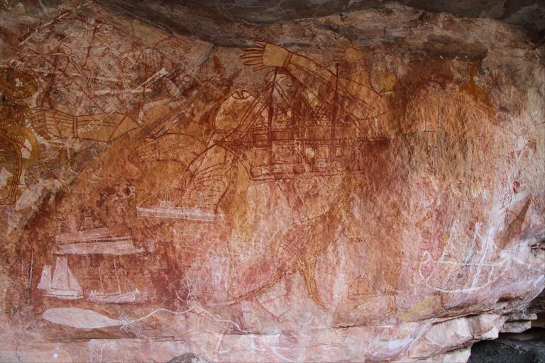 | Keywords: Ships and kangaroo on crocodile - Google Art Project.jpg 408009 Unknown Australian /collection/australian-rock-art/artwork/ships-and-kangaroo-on-crocodile-unknown/409020/ Unknown /collection/australian-rock-art/ Australian Rock Art 393003 http //www griffith edu au/ 11/23/2011 3 50 41 AM /collection/australian-rock-art/artwork/ships-and-kangaroo-on-crocodile-unknown/409020/ 1500 The Djulirri rock art site is located in the Wellington Range of Arnhem Land Northern Territory Australia It forms part of the Maung language group ™s traditional territory and is located at the western side of senior traditional owner Ronald Lamilami ™s Namunidjbuk clan estate Across a 52 m length of dissected sandstone Djulirri ™s main gallery was found to contain more than 1100 paintings 17 stencils one print and 46 figures made from native beeswax in three adjacent wall/ceiling areas There are a further 52 panels with at least another 2000 examples of rock art making it the largest known pigment site yet documented in Australia The site is arranged in a horseshoe-like shape measuring about 180 m by 120 m oriented roughly northwest “southeast with a cluster of other sites nearby Paintings made with combinations of red yellow white and black pigment typical of the region ™s recent rock art including introduced contact period subject matter are concentrated in Djulirri ™s main shelter and the rest of the southern wing of the horseshoe Representative subject matter of all previous Arnhem Land rock art forms and styles is concentrated in the northern wing with a few mixed panels towards the back It is within the main shelter that most of the beeswax art can also be found A few of these designs lie over or under painted depictions of watercraft including European tall ships and Southeast Asian sailing vessels praus This allowed us to use radiocarbon dating to obtain minimum or maximum ages for some diagnostic contact period paintings superimposed over or under the beeswax figures The site was intensively documented between 2008-2011 by a Griffith University led team of archaeologists and local Aboriginal people as part of Picturing Change an Australian-wide investigation into contact period rock art rock art 409020 False 1940 3/24/2012 12 49 36 AM Djulirri 9 painting 1500 1950 Djulirri Western Arnhem Land Finding 1500 - 1940 False 1 50146627565982 object ships-and-kangaroo-on-crocodile-unknown Ships and kangaroo on crocodile s The Djulirri rock art site is located in the Wellington Range of Arnhem Land Northern Territory Australia It forms part of the Maung language group ™s traditional territory and is located at the western side of senior traditional owner Ronald Lamilami ™s Namunidjbuk clan estate Across a 52 m length of dissected sandstone Djulirri ™s main gallery was found to contain more than 1100 paintings 17 stencils one print and 46 figures made from native beeswax in three adjacent wall/ceiling areas There are a further 52 panels with at least another 2000 examples of rock art making it the largest known pigment site yet documented in Australia The site is arranged in a horseshoe-like shape measuring about 180 m by 120 m oriented roughly northwest “southeast with a cluster of other sites nearby Paintings made with combinations of red yellow white and black pigment typical of the region ™s recent rock art including introduced contact period subject matter are concentrated in Djulirri ™s main shelter and the rest of the southern wing of the horseshoe Representative subject matter of all previous Arnhem Land rock art forms and styles is concentrated in the northern wing with a few mixed panels towards the back It is within the main shelter that most of the beeswax art can also be found A few of these designs lie over or under painted depictions of watercraft including European tall ships and Southeast Asian sailing vessels praus This allowed us to use radiocarbon dating to obtain minimum or maximum ages for some diagnostic contact period paintings superimposed over or under the beeswax figures The site was intensively documented between 2008-2011 by a Griffith University led team of archaeologists and local Aboriginal people as part of Picturing Change an Australian-wide investigation into contact period rock art rock art special url_id _gHwijPP4BO2xw PD-art-100 Google Art Project works by unknown artist Cave art Australian Aboriginal art |