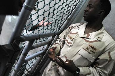 Keywords: Ship’s Serviceman 3rd Class Darold Johnsonbrown, a Joint Detention Group barber, speaks to a detainee about trimming his beard in Camp VI DVIDS367060.jpg en Petty Officer 3rd Class Darold Johnsonbrown ship's serviceman a Joint Detention Group barber speaks to a detainee about trimming his beard in Camp VI Feb 10 Johnsonbrown is attached to the Navy Expeditionary Guard Battalion which provides a portion of the guard force inside the detention facilities Traditionally in the Navy Ship ™s Serviceman manages the ship ™s barber shop laundry dry cleaning and tailor departments 2011-02-10 Petty Officer 1st Class David P Coleman https //www dvidshub net/image/367060 110210-N-+++++-147 2011-02-14 12 28 GUANTANAMO BAY CU PD-USGov-Military-Navy Guantanamo Bay Images from DoD uploaded by Fæ |
