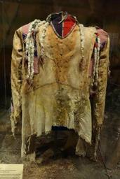 | Keywords: Shirt, Siksika, late 1800s, view 1, traditionally tanned hide, earth paint, glass beads, weasel (ermine) tails, feathers, wool - Glenbow Museum - DSC00993.JPG  en Exhibit in the Glenbow Museum 130 9th Ave S E Calgary Alberta Canada This work is old enough so that it is in the public domain Photography was permitted in the museum without restriction 2013-09-21 12 39 56 own Daderot cc-zero Aboriginal peoples clothing in the Glenbow Museum Uploaded with UploadWizard Siksika clothing Fur clothing of native people of North America Siksika Weasel clothing Fur tails |