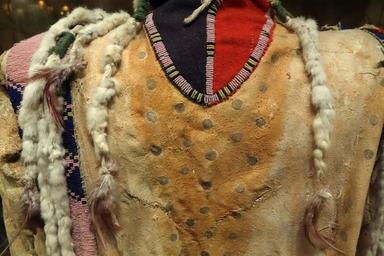 | Keywords: Shirt, Siksika, late 1800s, view 2, traditionally tanned hide, earth paint, glass beads, weasel (ermine) tails, feathers, wool - Glenbow Museum - DSC00998.JPG  en Exhibit in the Glenbow Museum 130 9th Ave S E Calgary Alberta Canada This work is old enough so that it is in the public domain Photography was permitted in the museum without restriction 2013-09-21 12 40 12 own Daderot cc-zero Aboriginal peoples clothing in the Glenbow Museum Uploaded with UploadWizard Siksika clothing Fur clothing of native people of North America Siksika Weasel clothing Fur tails |
