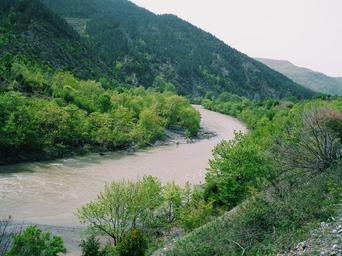 Keywords: Shkumbin valley2.JPG Shkumbin river in Albania as seen from a train between Elbasan and Librazhd 2014-04-22 11 08 30 own Jan Pešula cc-zero Shkumbin Elbasan County Taken with BenQ DC C143X