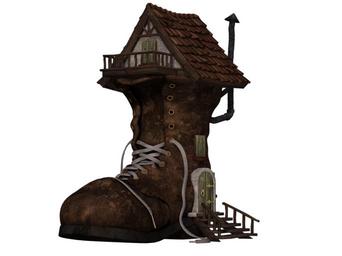 Keywords: shoe boots home boots house fantasy fairy tales stairs door digital art isolated