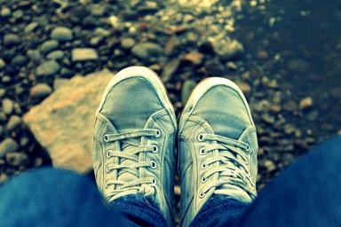 Keywords: shoes sneakers footwear denim jeans legs fabric nature outdoor sitting person sitting