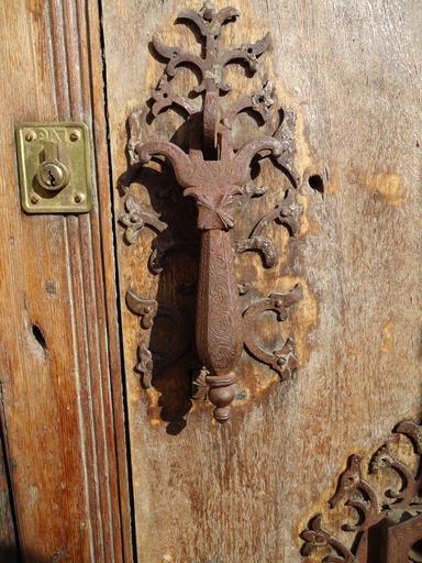 Keywords: shooter hinge lock door old wood iron rustic old door worn rusty gate forging key bolt metallic church