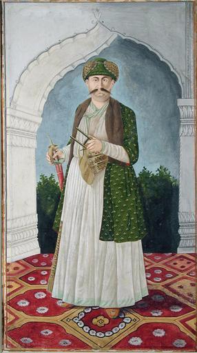 Keywords: Shuja-ud-Daula, Nawab of Awadh (6125081062).jpg en Display Artist Mihr Chand Creation Date ca 1775 Creation Place/Subject India State-Province Uttar Pradesh Court Mughal School Late Mughal Media Support Opaque watercolor and gold on paper Display Dimensions 9 23/32 in x 5 9/32 in 24 7 cm x 13 4 cm Credit Line Edwin Binney 3rd Collection Accession Number 1990 413 Collection <a href http //www sdmart org/art/our-collection/asian-art rel nofollow >The San Diego Museum of Art</a> Label Copy Later Mughals Installation August 2003 Portraiture remained in demand among sub-Imperial patrons but was generally more direct and less emblematic This portrait is a depiction of the powerful Nawab of Avadh Shuja ud-daulah ruled 1754-1775 one hand on a dagger the other on a sword He is the ruler to whom the Mughal heir Shah Alam turned for refuge during the clash of the Marathas and the Afghans in Delhi During the Nawabs twenty-year reign he attracted painters and men of letters to his court including western painters Westernization of style is evident in the frontal view of his face although the body is shown in three-quarters view the naturalistic shading in the folds of his garment and the very deliberate if clumsy recession in the geometries of the carpet There is a loss of precision in technique and an of interest in rendering visual impressions rather than complete minute details seen for example in the pattern in the Nawabs slippers August 2008 Emerging Elites This wealthy and powerful Nawab lord or governor in the Urdu language was from 1753 until 1775 a de facto independent ruler of the region known then as Awadh a large territory in northern India essentially spanning the modern state of Uttar Pradesh Both a patron of the arts and an able administrator Shuja-ud-Daula maintained a vital painting atelier at his court and managed delicate political relations with the Muslim Afghans to the north the Hindu Marathas to the west and the British who had gained control of Bengal to the east Recognizing that portrait painting was a mark of prestige among Europeans Shuja-ud-Daula invited the English academic portraitist Tilly Kettle 173586 to come to his court at Faizabad to produce oil paintings of him and his family Indian artists in the Nawabs employ who had been working in the imperial Mughal style were intrigued by Kettles work and made copies on paper of his oil paintings of which this is one example Tilly Kettle Gran Bretaa 173586 Shuja-ud-Daula Nawab de Oudh con su hijo Asaf-ud-Daula leo sobre lienzo Faizabad 1772 Coleccin del Muse de Versailles no MV 3888 2001-10-15 14 26 21 https //www flickr com/photos/thesandiegomuseumofartcollection/6125081062/ Flickr en thesandiegomuseumofartcollection PD-old-100 Files from the San Diego Museum of Art to be checked Company style |
