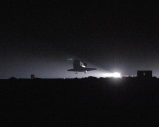 | Keywords: Shuttle Discovery Night Landing DVIDS833190.jpg en Space Shuttle Discovery landed safely at NASA's Dryden Flight Research Center at Edwards Air Force Base in Calif at 5 11 a m this morning following the very successful 14-day STS-114 return to flight mission August 9 2005 NASA / Photo Carla Thomas ED05-0166-01 NASA Identifier 282100main_ED05-0166-01_full_full 2009-08-20 Glenn Research Center https //www dvidshub net/image/833190 833190 2013-02-08 02 57 WASHINGTON D C US PD-USGov Landing of STS-114 Images from DoD uploaded by Fæ |