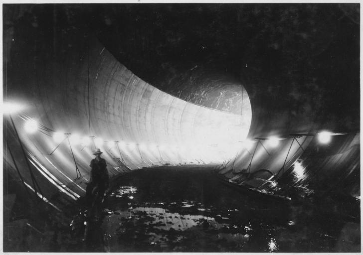| Keywords: "Side-wall concrete in place in diversion tunnel No. 2 near inlet. Photo taken after fourteenth day after pouring... - NARA - 293667.jpg Scope and content Photograph from Volume Two of a series of photo albums documenting the construction of Hoover Dam Boulder City Nevada General notes 293667 Local identifier Department of the Interior Bureau of Reclamation Engineering and Research Center 05/18/1981 - 03/04/1988 NARA's Rocky Mountain Region Denver NRGA Building 48 Denver Federal Center West 6th Avenue and Kipling Street Denver CO 80225-0307 1932-06-01 Record group Record Group 115 Records of the Bureau of Reclamation 1889 - 2008 Record group ARC 444 Photograph albums compiled 1903 - 1972 Series ARC 293611 File unit File unit ARC Variant control numbers NAIL Control Number NRG-115-CONSTPHO85006-BC21225 Other versions <gallery> File Side-wall_concrete_in_place_in_diversion_tunnel_No _2_near_inlet _Photo_taken_after_fourteenth_day_after_pouring _-_NARA_-_293667 tif tif File Side-wall_concrete_in_place_in_diversion_tunnel_No _2_near_inlet _Photo_taken_after_fourteenth_day_after_pouring _-_NARA_-_293667 jpg jpg </gallery> NARA-cooperation PD-USGov Construction of the Hoover Dam |