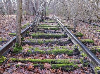 Keywords: siding railway seemed historically transport tree nature moss lapsed rot unused