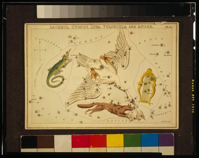 Keywords: Sidney Hall - Urania's Mirror - Lacerta, Cygnus, Lyra, Vulpecula and Anser - original.tif File Sidney Hall - Urania's Mirror - Lacerta Cygnus Lyra Vulpecula and Anser jpg Lacerta Cygnus Lyra Vulpecula and Anser plate 14 in Urania's Mirror a set of celestial cards accompanied by A familiar treatise on astronomy by Jehoshaphat Aspin London Astronomical chart 1 print on layered paper board etching hand-colored Vulpecula and Anser is basically the full name of the constellation Vulpecula now standardised to its shortened form LOC-image cph 3g10063 1825 Creator Sidney Hall File Sidney Hall - Urania's Mirror - Lacerta Cygnus Lyra Vulpecula and Anser jpg - Restoration JPEG File Sidney Hall - Urania's Mirror - Lacerta Cygnus Lyra Vulpecula and Anser png - Restoration PNG File Sidney Hall - Urania's Mirror - Lacerta Cygnus Lyra Vulpecula and Anser - original tif - Original TIFF PD-old-100 Lacerta constellation Cygnus constellation Lyra Vulpecula Urania's Mirror Adam Cuerden's restorations Cygnus constellation in art |