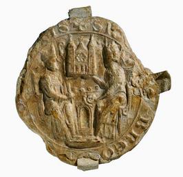 Keywords: Siegel Bremen 1230-1365.jpg de Siegel der Stadt Bremen von 1230 bis 1365 Mit dem später für größere Formate übernommenen Motiv des Doms zwischen Karl dem Großen und Bischof Wilhad liefert es die älteste bildliche Darstellung des Bremer Doms Unterhalb des Doms zeigt das Siegel eine zinnenbewehrte Mauer mit Stadttor en Seal of the city of Bremen as used from 1230 to 1365 The subject Charlemagne and bishop Wilhad with the cathedral between them serves the oldest depiction of Bremen Cathedral Below i e in front of the cathedral there is a town wall with pinnacles and an open bar Staatsarchiv Bremen stamp 1230 unknown scan Joachim Koetzle upload Ulamm <span class signature-talk ></span> File Bremer Dom 1230 im Siegel jpg cut File 1 Bremer Stadtsiegel gif photo of a complete cast of lesser profile quality Western façade of Bremen Cathedral History of Bremen Cathedral Bremen in the 1230s Seals of Bremen 1230 Scanned for user Ulamm PD-old-100-1923 |