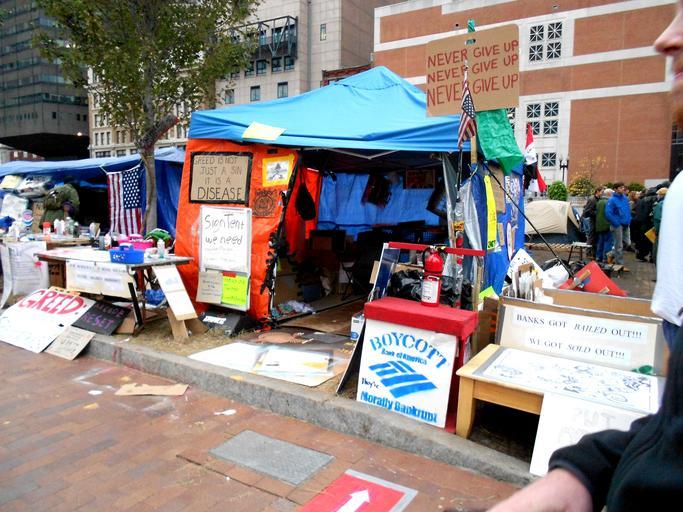Keywords: Sign tent at Occupy Boston.jpeg en Sign tent at Occupy Boston 2011-10-23 own GorillaWarfare 42 35283 -71 05557 cc-zero Uploaded with UploadWizard Occupy Boston Banners and signs at demonstrations and protests