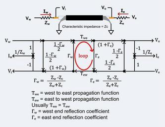 | Keywords: Signal flow graph for transmission line.jpg circuit BadJPEG en A signal flow graph for a transmission line The red looping arrow identifies the only loop in this signal flow graph Ve and Vw voltage generators are the inputs Vi Vo Ie and Iw are outputs own Constant314 Cc-zero Transmission lines Electrical diagrams Signal Flow Graph |