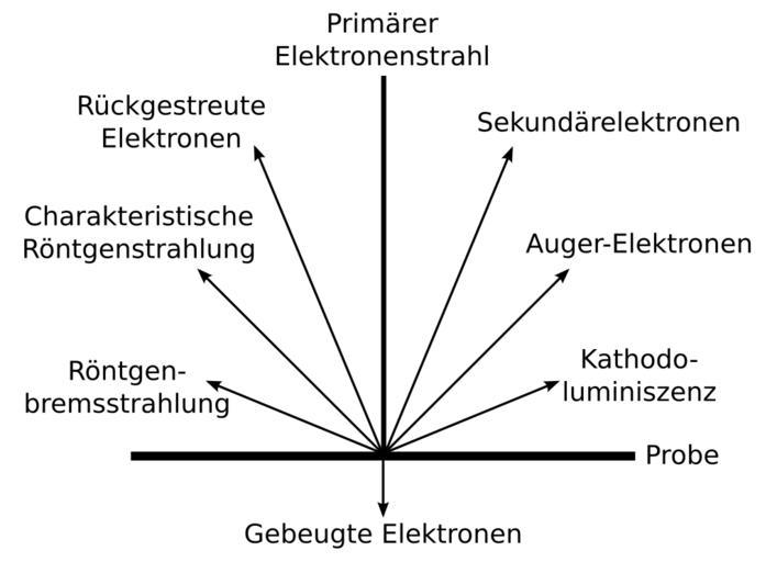 Keywords: Signale REM.svg Schematische Darstellung der Signale die im Rasterelektronenmikroskop REM entstehen und genutzt werden own based on Datei SignalREM jpg 2010-12 RobertMinFG Leyo Cc-zero Scanning electron microscope