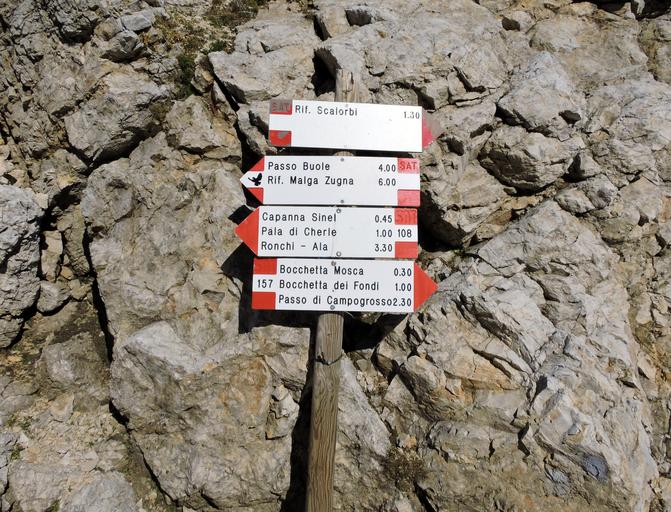 Keywords: signals signage hiking mountain scalorbi carega veneto italy rock sassi