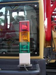 Keywords: Signalsäule an einer grossen selbstfahrenden Baumaschine (rot gelb grün).jpg warning lights seen on a building machine at bauma fair Munich<br> signal lamp tower with cheval glass lights on a hydraulic excavator Signalturm / Signalsäule mit Drehspiegelleuchten an einem Hydraulikbagger zur visuellen Statusanzeige own 2007-04-29 User Mattes Warning signs Signalling lamps Bauma 2007 Taken with Nikon Coolpix L2 Work by Mattes 2007 Green red white yellow User Mattes/Contributions/Topics/Technology |