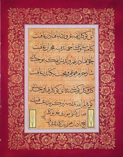 | Keywords: Signed Mahmud Celaleddin - Levha (calligraphic inscription) - Google Art Project.jpg 1750 Signed 591902 Mahmud Celaleddin 1750 /collection/sakp-sabanc-museum/artwork/levha-calligraphic-inscription-signed-mahmud-celaleddin/574848/ Signed Mahmud Celaleddin /artist/mahmud-celaleddin/4126481/ 4126481 /collection/sakp-sabanc-museum/ Sakıp Sabancı Museum 479109 http //muze sabanciuniv edu/ 12/28/2011 6 21 37 PM /collection/sakp-sabanc-museum/artwork/levha-calligraphic-inscription-signed-mahmud-celaleddin/574848/ 1750 1700s 535 574848 False 1750 3/24/2012 5 16 43 AM 130-0074-MC Sakıp Sabancı Museum Ink colours and gold on paper 1750 1760 w415 x h535 mm 1700s False 0 78515625 Sakıp Sabancı Museum Object levha-calligraphic-inscription-signed-mahmud-celaleddin Levha calligraphic inscription l 415 special url_id RgE7GfBwuDc83w PD-old-100 Google Art Project works by Mahmud Celaleddin Google Art Project Uncategorized 2015 March 25 |