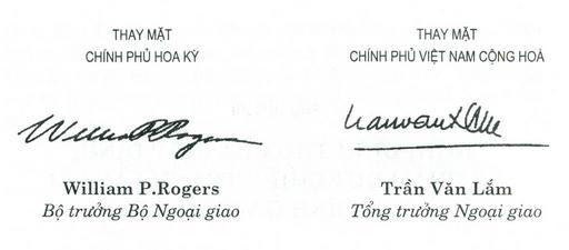 | Keywords: Signes of Roges and TVLam.jpg vi Chữ ký của Bộ trưởng Ngoại giao Hoa Kỳ William P Rogers và Bộ trưởng ngoại giao Việt Nam Cộng hòa Trần Văn Lắm tại Hiệp định Paris 1973 về Việt Nam Paris Peace Accords 1973 William P Rogeres and Tran Van Lam 1973-01-27 PD-USGov PD-USGov Vietnam War Draft |