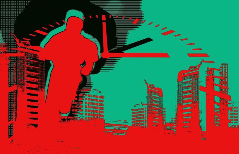 | Keywords: silhouette city big city clock jogger race pointer hour escape hustle and bustle stress voltage burnout headache psychology psychotherapy psycholgie profession work time meeting appointment past transience time window time pressure time travel amount of time target digits clock face forward |