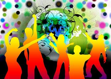 Keywords: silhouette people personal human movement jump dance light lust for life joy of life party club night club dance bar dance club music fun mood