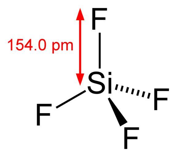 Keywords: Silicon-tetrafluoride-2D-dimensions.png Structural formula including the Si-F bond length of the silicon tetrafluoride molecule SiF<sub>4</sub> Bond length data from Greenwood Earnshaw Own 2007-10-15 Ben Mills Benjah-bmm27 Images by Ben Mills Silicon tetrafluoride |