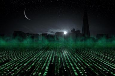 Keywords: sillouette state urban skyscraper panorama skyline city river abendstimmung manhattan america matrix space moon sky star sun night green binary