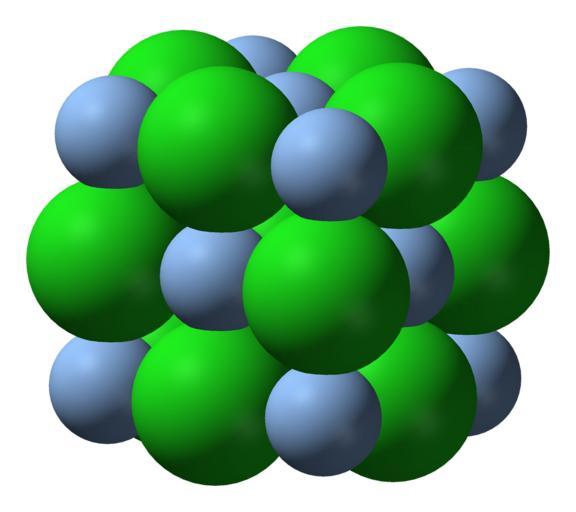 Keywords: Silver-chloride-3D-ionic.png Silver chloride Crystal structures of chlorides Strukturbericht B1 Rock salt unit cells