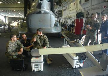 Keywords: Silver Fox 02.jpg Pacific Ocean - Marines with the 15th Marine Expeditionary Unit MEU shows the Silver Fox Unmanned Aerial Vehicle UAV to Sailors aboard the amphibious assault ship USS Boxer LHD 4 The 15th MEU and Boxer are part of Expeditionary Strike Group Five ESG which is currently participating in Composite Training Unit Exercise COMPTUEX off the coast of Southern California RELEASED 060716-N-5914D-007 Navy http //www navy mil/view_image asp id 37274 2006-07-16 Mass Communication Specialist 3rd Class Noel Danseco PD-USGov-Military-Navy BAE Silver Fox |