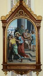 Keywords: Simon Ogrin - Križev pot, 1. postaja (Hrovača).jpg Artwork creator Simon Ogrin 1912 oil canvas cm 84 53 Hrovača Church https //prezi com/gd-yfn-05joo/oljne-slike-iz-obdobja-od-1800-do-1914-v-cerkvah-ribniske-zu Non-free frame PD-old-auto 1930 1912 paintings in Slovenia Paintings by Simon Ogrin Stations of the Cross in Slovenia Station 1 Jesus is condemned to death 20th-century paintings of the Passion of Christ 20th-century religious paintings in Slovenia 20th-century oil on canvas paintings in Slovenia Hrovača |