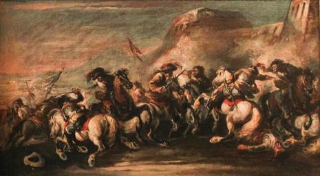 Keywords: Simonini - Battle piece.jpg Artwork Creator Francesco Simonini Oil on canvas National Museum of Fine Arts La Valletta object history provenanceEvent 1960 purchase private collection Malta National Museum of Fine Arts Valletta credit line accession number item ID 112 own photo by Szilas in the National Museum of Fine Arts Valletta PD-old-100 Collections of the National Museum of Fine Arts Malta Francesco Simonini |