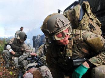 | Keywords: Simulated patient in HH-60 rescue exercise.jpg en U S Air Force Staff Sgt BIll Cenna a 212th Rescue Squadron pararescueman prepares to move a simulated patient on a litter while a U S Air Force HH-60G Pave Hawk lands during training at Joint Base Elmendorf-Richardson Alaska Sept 21 2011 The training focused on quick care under fire and also provided training to Baker Company 3rd Platoon 509th Infantry Regiment Airborne on how to react when pararescuemen arrive 2011-09-21 http //www flickr com/photos/usairforce/6198828482/in/photostream/ Zachary Wolf PD-USGov Uploaded with UploadWizard Joint Base Elmendorf-Richardson 509th Infantry Regiment United States 176th Wing Alaska Air National Guard Sikorsky HH-60 Pave Hawk Medical evacuation |