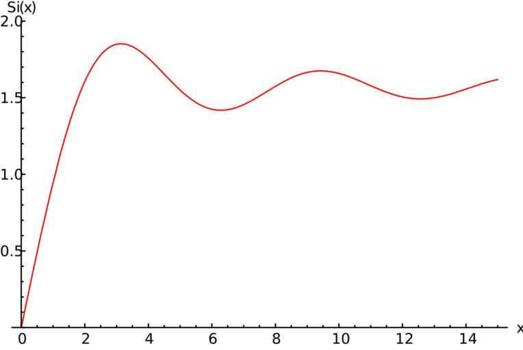 Keywords: Sin integral.svg Graph of the sine integral function <math>\mathrm Si x </math> Created using Mathematica 6 Own 2008-05-01 Saran T Integral functions