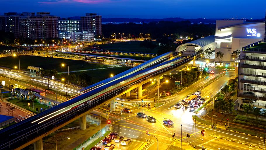MAKE A MEME View Large Image singapore night evening lighting residential housing estate building street traffic train car transportation track mrt station long exposure