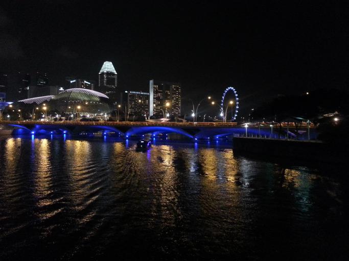 Keywords: singapore water night landmark district sky modern building marina river waterfront architecture asia business bay commercial metropolis central tourism