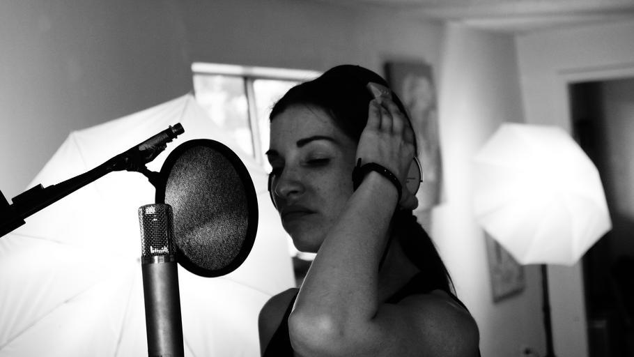 Keywords: singer musician woman headphones girl singing microphone recording sound studio