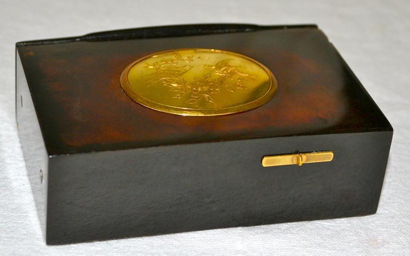 | Keywords: Singing bird box by Bontems (2).JPG en Singing bird box model nº 11 by the reputed French house Bontems circa 1890 Fitted with a going-barrel movement The beautiful and delicately crafted full-bodied bird with spiral legs exhibits multi-coloured layered feathered plumage with predominant tones of green and red complemented with also green red orange and blue iridescent hummingbird feathers giving as a result a well-combined palette of colours They were dressed by hand so no two birds look exactly alike The birds made by Bontems in this period are the most detailed and proportionate they ever made It goes up and down moving bone beak wings and tailfeather to continuous realistic birdsong rising through finely pierced and tooled gilt grille Plain polished silver gilt matt finished lid interior while the exterior shows a pair of hand-engraved birds foliage and floral decoration framed by a plain oval border in highly polished tortoiseshell case with a small hinged compartment to rear matching gilt start/stop button to front-right The top interior of the case has been shaved getting a semi-transparent look with a rich variety of tones and shades of honey brown and amber colours which allows to see part of the mechanism in action Measurements 10 cm by 6 70 cm by 3 10 cm Caja de pájaro cantor autómata modelo nº 11 fabricada por la firma francesa Bontems hacia el año 1890 El ave está vestida con plumaje de colibrí sudamericano con colores predominantes en verde y rojo complementados asimismo con verde rojo naranja amarillo y azul iridiscentes pico de hueso o marfil y patas de alambre en espiral Estos autómatas eran adornados a mano así que no hay dos que sean exactamente iguales Los pajarillos elaborados por Bontems durante esta época son de los más hermosos detallados y proporcionados que hicieron Mientras canta el ave autómata se mueve ligeramente de arriba a abajo abre y cierra el pico bate las alas y mueve la cola surgiendo a través de una rejilla finamente trabajada Caja con forma de tabaquera de auténtico carey pulido con pequeño compartimento en la parte trasera la cual muestra en su parte superior un medallón ovalado de plata dorada donde se representa una composición formada por una pareja de aves simbolizando la fidelidad y decoración vegetal a base de ramas con hojas y flores grabadas a mano todo ello enmarcado por un marco igualmente ovalado Palanca de mando de latón situada en la parte frontal derecha La parte superior interna de la caja ha sido rebajada en grosor lo cual permite apreciar toda una serie de matices y tonalidades en colores ámbar y marrón incluso puede observarse parte de la maquinaria en funcionamiento Teniendo en cuenta que el caparazón de tortuga difiere en cada ejemplar y que los artesanos trabajaban cada caja de manera individual dándole distintos acabados no hay dos que sean idénticas Medidas 10 cm de largo por 6 70 cm de ancho por 3 10 cm de alto own Jafd88 2012 Singing Bird Box Cc-zero |