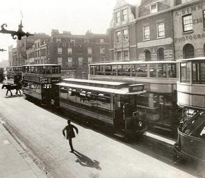 | Keywords: Single deck LCC tram.jpg  Several London County Council trams on Westminster Bridge Road The single deck one was designed to fit through Kingsway tram Subway which ran from Holborn to its exit under Waterloo Bridge on the Embankment 1912-06-21 Author PD-old London County Council Tramways Westminster Bridge Road Trams in London |