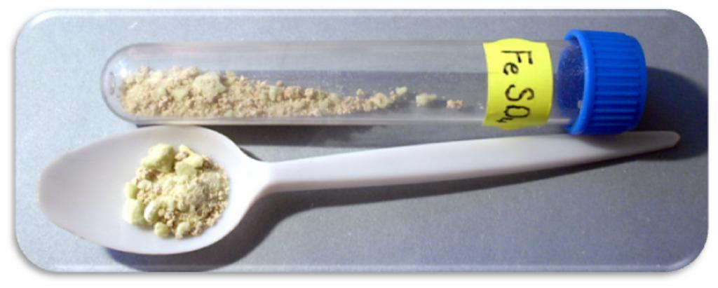 Keywords: Síran železnatý.PNG Síran železnatý - FeSO4 own 2007-06-24 Ondřej Mangl Není nutno Iron II sulfate Samples of chemical compounds