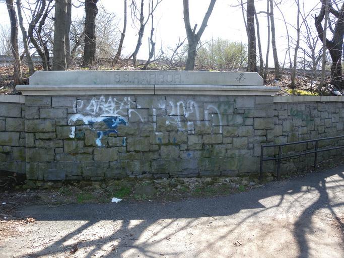 | Keywords: SIRT S S Harbor wall jeh.jpg en Looking south at station wall inscribed with S S Harbor about 700 ft 200 m west of station File Sa Snug Harbor sta SIRT jeh JPG on a sunny midday own Jim henderson 2010-04-04 40 38 733 0 N 74 6 268 0 W alt 0_source exif_heading S cc-zero North Shore Branch Staten Island Railway Sailors' Snug Harbor |