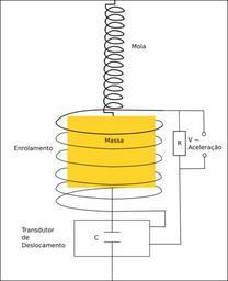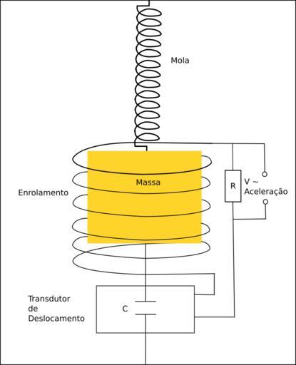 MAKE A MEME View Large Image Sismografo-Acelerometro2.svg pt Sismógrafo utilizando acelerômetro O movimento da massa altera a capacitância do transdutor gerando uma corrente através do resistor R possibilitando a medida da voltagem V proporcional a aceleração da ...