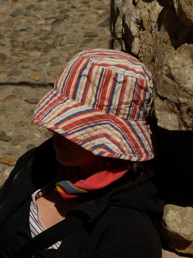 Keywords: sit sleep rest tired human person sun hat