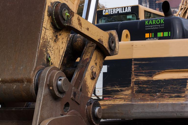 Keywords: site excavators tracked vehicles hydraulic lubricant traces of use metal construction work construction machine hard solid caterpillar cat