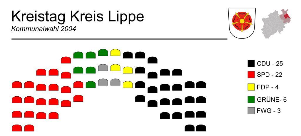 | Keywords: Sitzverteilung Kreistag Kreis Lippe 2004.svg Sitzverteilung im Kreistag Lippe Wahlperiode 2004 own based partly on Kreiswappen des Kreises Lippe svg uploaded by Ludger1961 North rhine w HF svg by TUBS design based on de Benutzer DLiebisch/sitzverteilungen and Sitzverteilungsfigur svg by DLiebisch 2009 TUBS TUBS GFDL cc-by-3 0 2 5 2 0 1 0 cc-by-sa-3 0 2 5 2 0 1 0 TUBS/Credits Election apportionment diagrams of North Rhine-Westphalia Lippe Kreistag 2004 Statistics of Kreis Lippe Kreistag 2004 Local elections in North Rhine-Westphalia 2004 Lippe Kreistag |